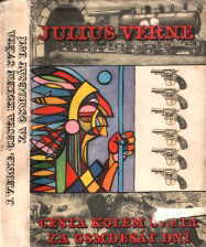 Die Originalausgabe erschien am 30. Januar 1873 unter dem Titel Le tour du monde en 80 jours bei Pierre-Jules Hetzel, Paris. Die erste deutschsprachige Buchausgabe erschien im gleichen Jahr. Bilder: links oben eine deutschsprachige Ausgabe von 1875 /1/. Rechts: Frontispiz des